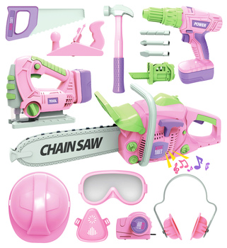 I bambini rosa fingono il gioco di costruzione Set di strumenti con cassetta degli attrezzi e trapano elettrico età 3 + giocattolo di plastica per bambini e ragazzi